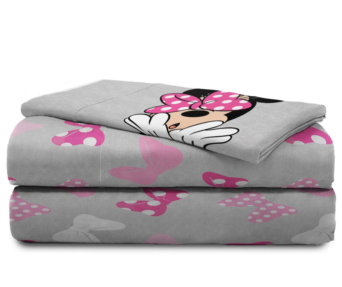 Minnie mouse bedding for twin beds is perfect for a little girl's room, dorm room or any room that needs a little disney magic. The top sheet measures 45 x 60 and the bottom fitted sheet measures 28 x 52 with 8 slant. Disney minnie mouse sheet set twin blue ruffle floral flowers 33223. Minnie mouse happy hearts 4 piece toddler bed set includes a comforter, fitted bottom sheet, flat top sheet, and reversible pillowcase. The sheet feels like a silky and soft and smooth to touch.